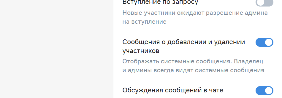 Скрытие системных уведомлений. В Мессенджере теперь можно скрыть сообщения о добавлении и удалении участников. Чат не будет подниматься в списке без реальных сообщений, а лишние пуши перестанут отвлекать от важного. Обновление доступно в облачной и серверной версиях Мессенджера.
