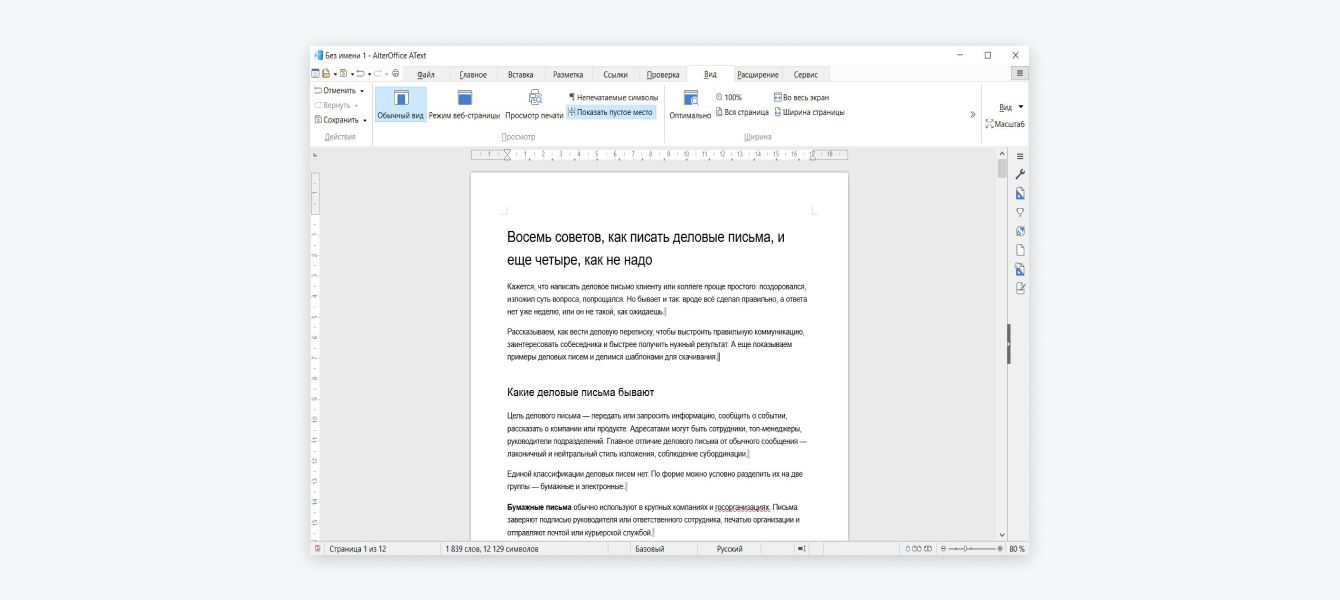 AText от AlterOffice — это еще один пример отечественного текстового редактора. Решение входит в единый реестр российских программ для электронных вычислительных машин и баз данных с 2020 года, поэтому редактор подойдет для госкорпораций.