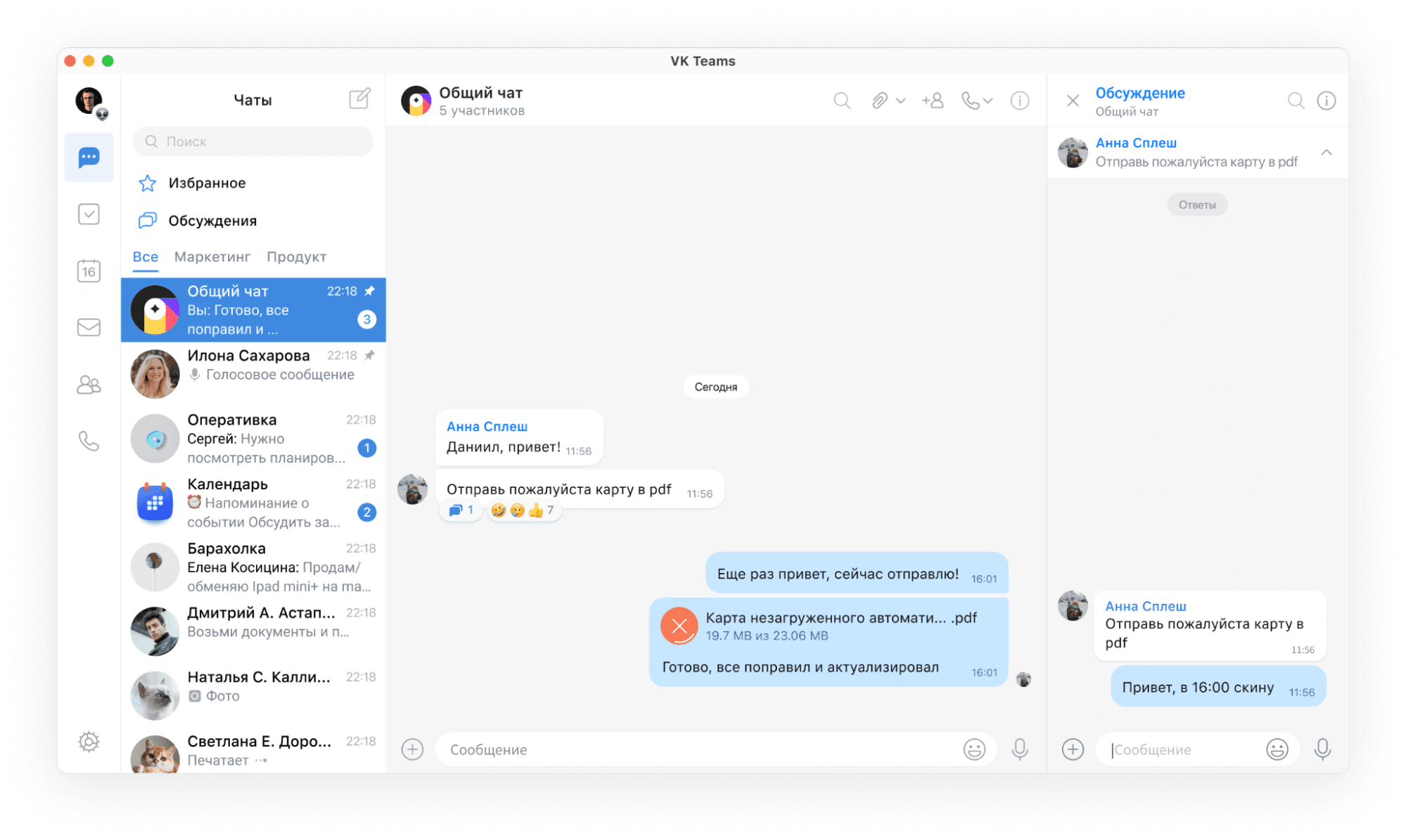 Прозрачность процессов и контроль. Когда рабочие задачи, переписка и документы находятся в одном пространстве, руководитель видит всю картину целиком. Можно отследить, как движется проект, на каком этапе застряли задачи, кто не вышел на связь или не отправил нужный файл. Это помогает быстрее находить узкие места и принимать решения на основе данных, а не догадок.