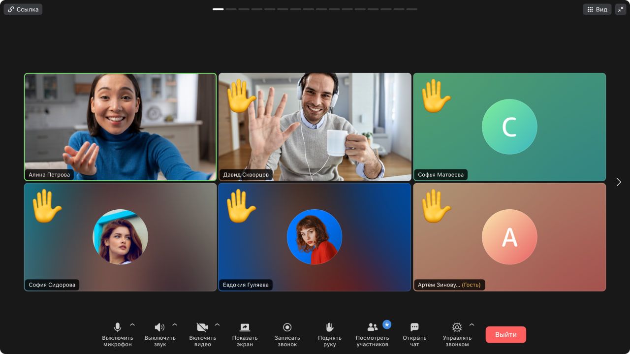 Интерфейс звонка в сервисе Видеоконференции VK WorkSpace