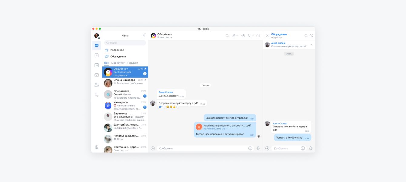 В мессенджере VK Teams можно создать чаты для рабочего и неформального общения сотрудников