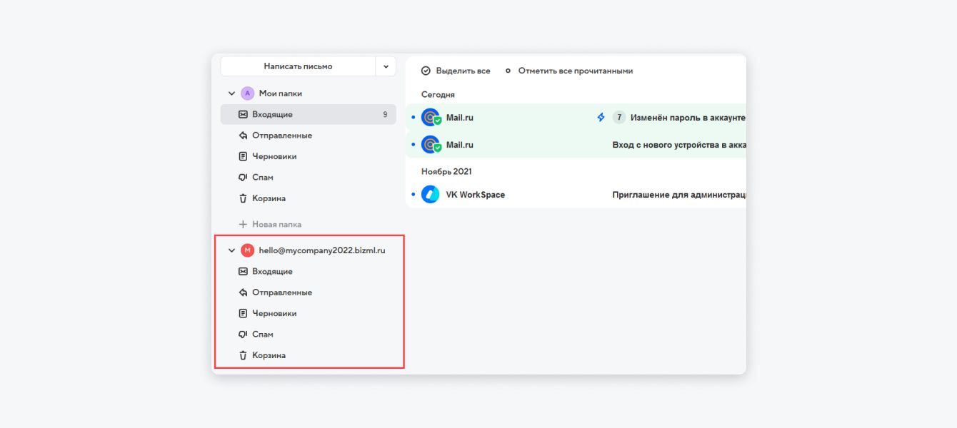 Корпоративная почта. У каждого сотрудника собственный адрес на домене компании — это повышает доверие клиентов и партнеров. В почте можно создавать и общие ящики. Это значит, что читать и отправлять письма могут сразу несколько сотрудников отдела. Например, все специалисты службы поддержки работают с запросами клиентов через адрес support@mycompany.ru.