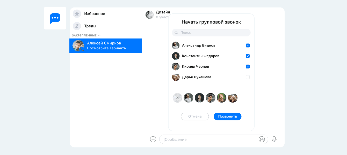 Совет 3. Звоните коллегам прямо из корпоративного мессенджера, чтобы организовать групповой звонок