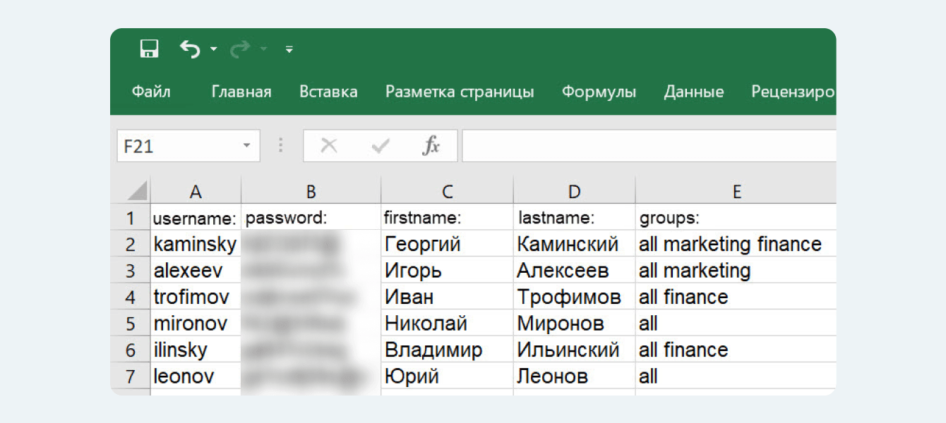 Логины, пароли и группы рассылок можно перенести одним экселевским файлом