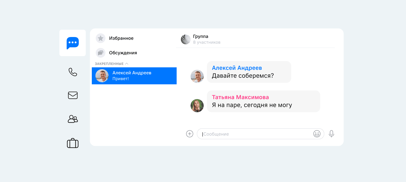 Сервис VK Teams напоминает современный мессенджер. В нем можно закрепить важные чаты, оставлять реакции на сообщения и общаться в ветках обсуждений. А еще — звонить и добавлять до 100 участников в групповой звонок.