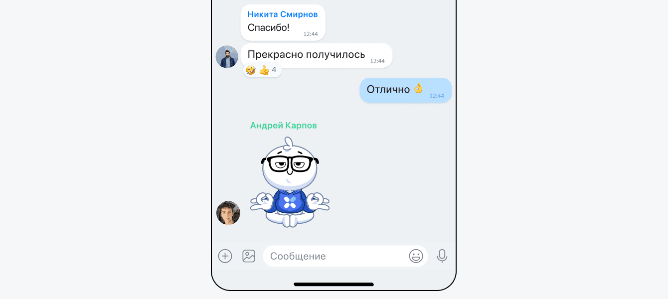 Реакции стоит использовать для быстрых ответов, чтобы не засорять чат короткими сообщениями, например «Окей», «Мне нравится» и «Все понятно»