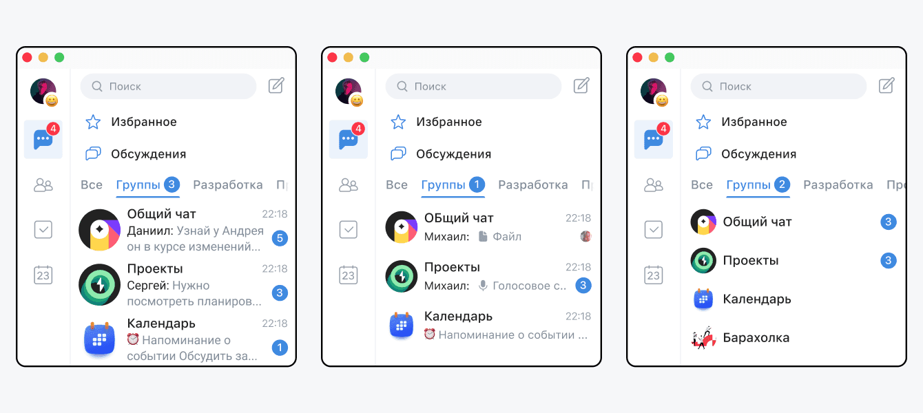 Виды списка чатов в Мессенджере VK WorkSpace (бывший VK Teams)