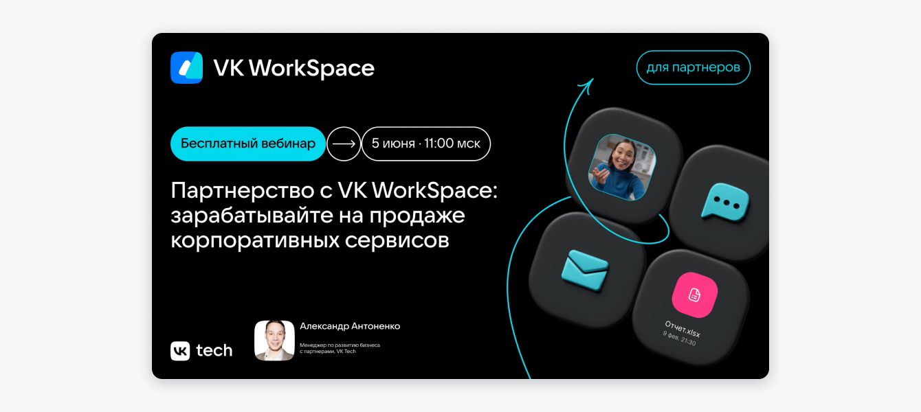 Партнерский вебинар VK WorkSpace, где эксперты VK Tech рассказали, как можно зарабатывать на продаже корпоративных сервисов.