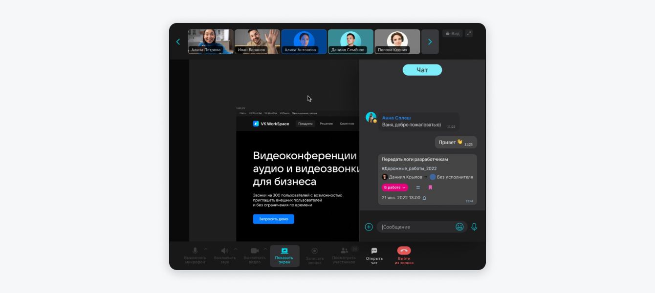 Один из таких сервисов — видеоконференции VK WorkSpace. Это простой и надежный инструмент для онлайн-встреч до 500 человек. Участников можно пригласить на вебинар по гостевой ссылке — им не нужна авторизация. Сервис не требуют скачивания и установки — вебинар откроется прямо в браузере.