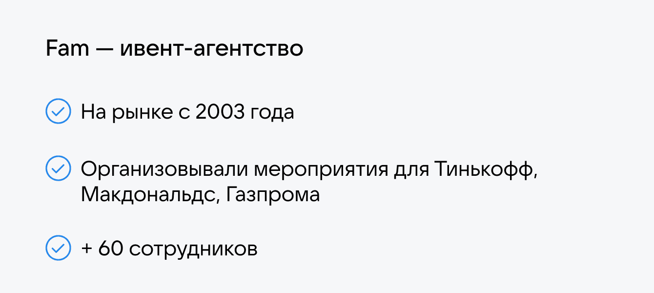 Ивент-агентство Fam с 2003 года помогает компаниям организовывать офлайн-конференции, презентации и другие мероприятия. Мы работали над такими проектами, как Media Dome для Тинькофф, день рождения социальной сети «Пульс» в Тинькофф Инвестициях, День карьеры в Макдональдсе. У нас 2 офиса в Москве и около 60 сотрудников. Основной канал коммуникации в компании — корпоративная почта. Поэтому важно, чтобы она работала стабильно и сотрудники могли быстро общаться друг с другом и с клиентами.