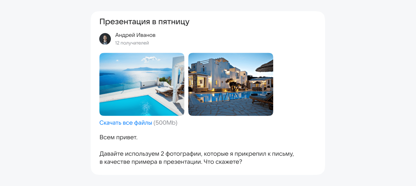 ✅ Письма с вложениями отправляются мгновенно. Теперь сотрудники быстрее отвечают клиентам и коллегам, ведь не приходится ждать, пока загрузятся документы.