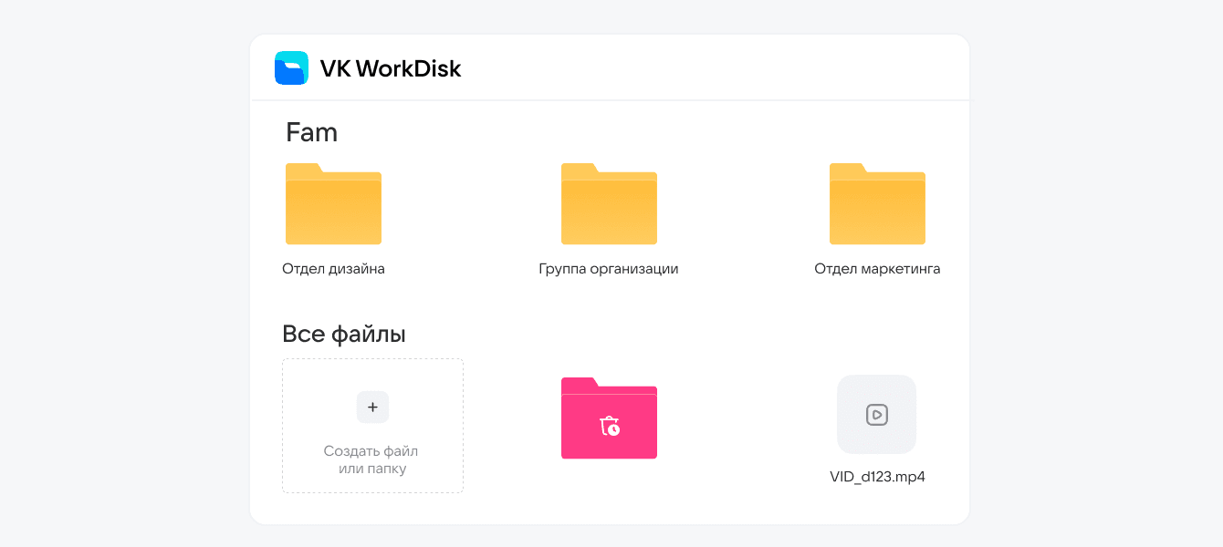 ✅ Нужные файлы лежат в облачном хранилище. Документы, которыми часто обмениваются, хранятся на VK WorkDisk. У каждого отдела свои права доступа: например, информация о зарплатах будет доступна только бухгалтерии.