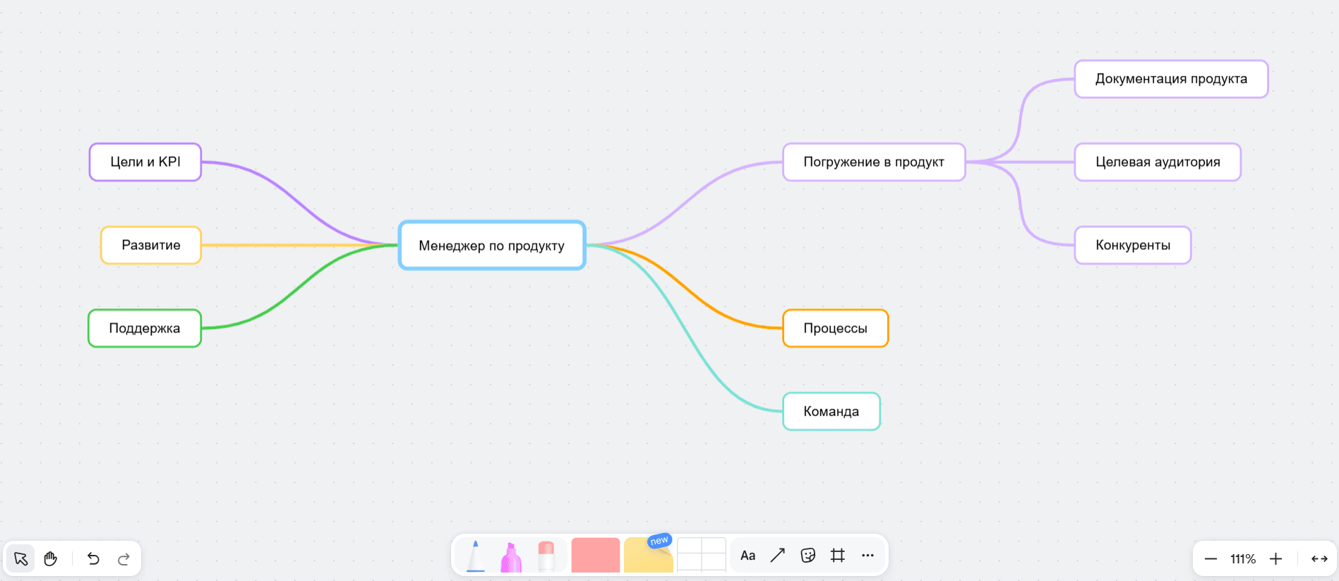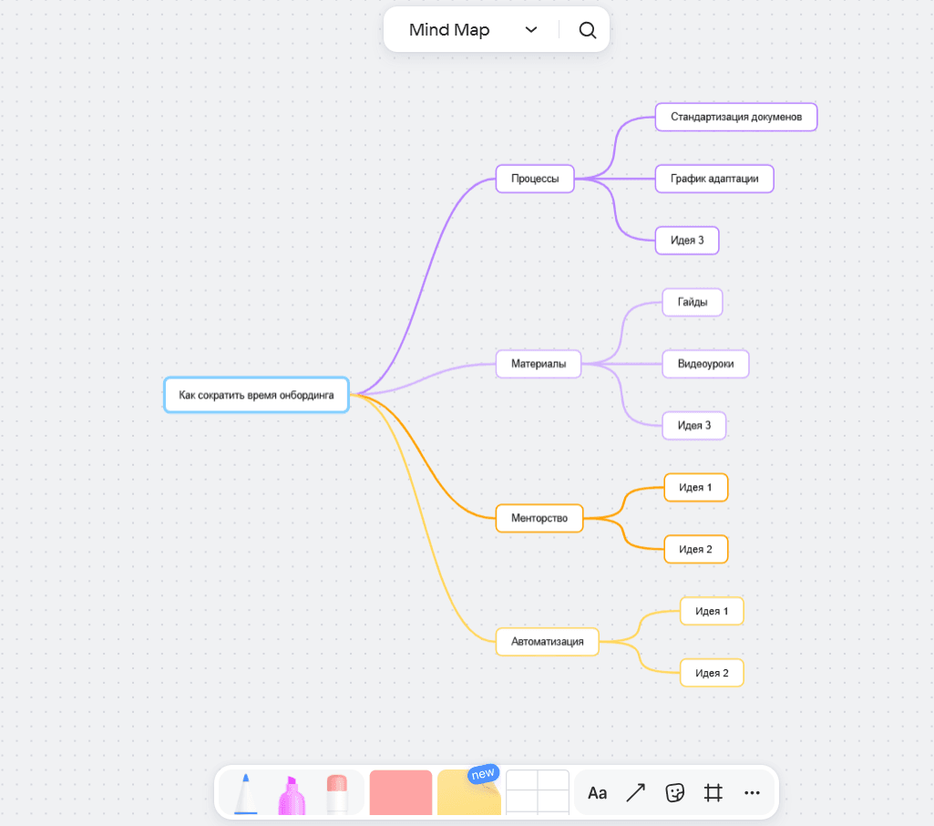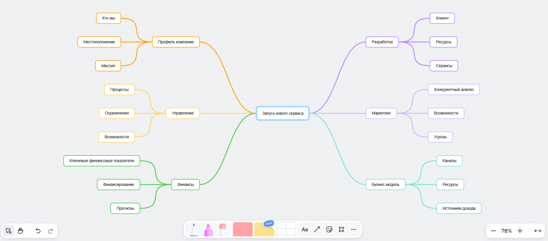 Например, так выглядит интеллект-карта в сервисе Доска VK WorkSpace
