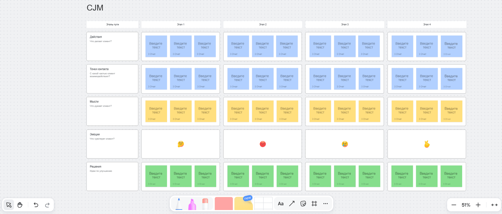Доска VK WorkSpace предлагает готовый шаблон CJM — визуальной карты пути клиента