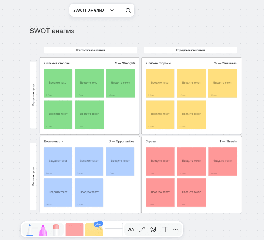 Шаблоны. Готовые шаблоны — канбан-доски, таблицы для SWOT-анализа — ускоряют начало работы. В некоторых сервисах можно создавать и сохранять собственные шаблоны.
