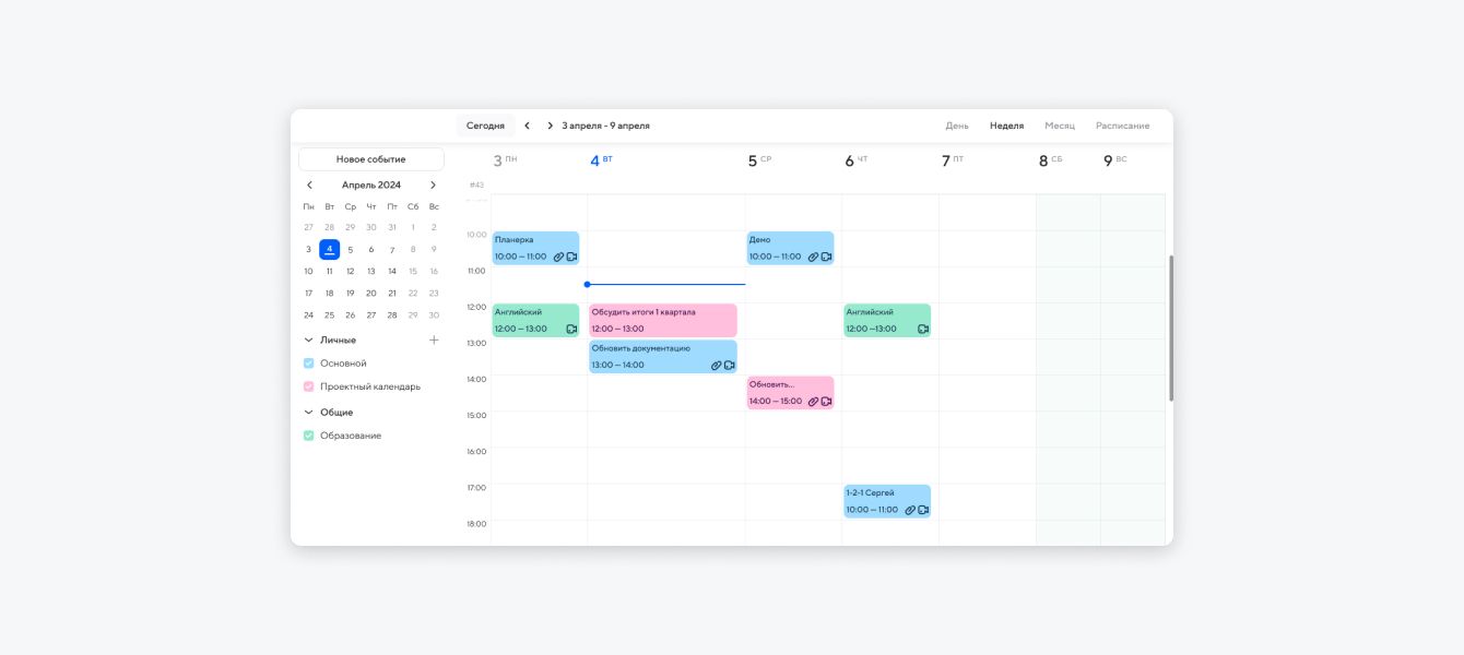 В Календаре сотрудник может сортировать свои события: оставлять только рабочие или личные