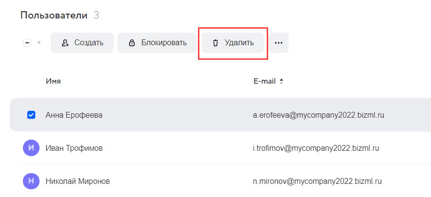 Для массового удаления пользователей наведите курсор на аватар каждого из них и отметьте чекбокс напротив имени. Затем нажмите кнопку «Удалить» и подтвердите операцию.