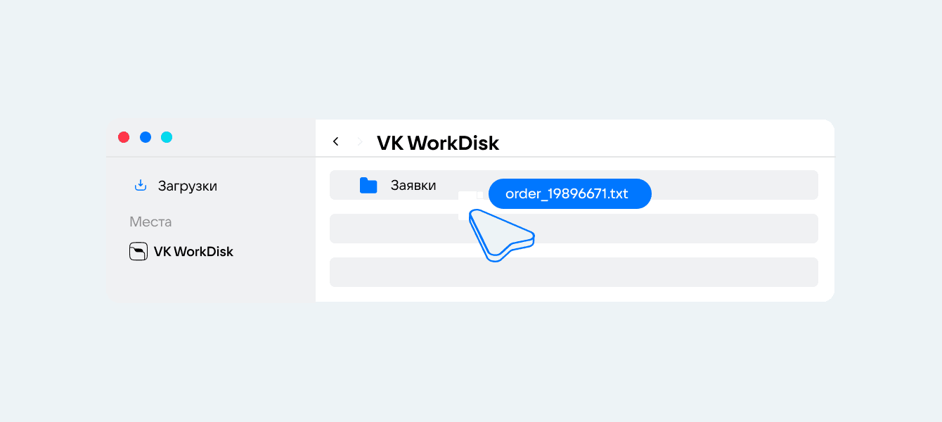 На VK WorkDisk можно загрузить файлы напрямую, без скачивания. А еще все серверы VK WorkDisk находятся в России — можно не переживать, что хранилище перестанет работать и придется снова «переезжать».