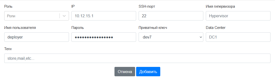 Если авторизация между инсталлятором и гипервизором выполняется не по ключу, а по паролю, станут недоступны опции инсталлятора (например, запуск шагов по настройке). В этом случае выполните действия: