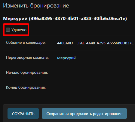 Для запрета бронирования переговорной комнаты, в соответствующей строке уберите галочку в колонке Доступна.