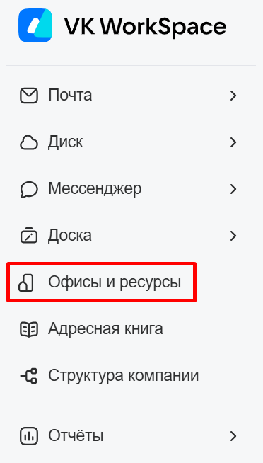 Для перехода в сервис Офисы и ресурсы в панели администратора выберите Офисы и ресурсы.