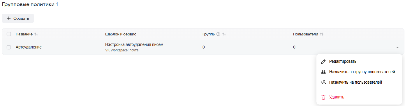 В версии 26.1 появилась возможность настроить политики автоудаления на отдельные группы пользователей в разделе «Политики».