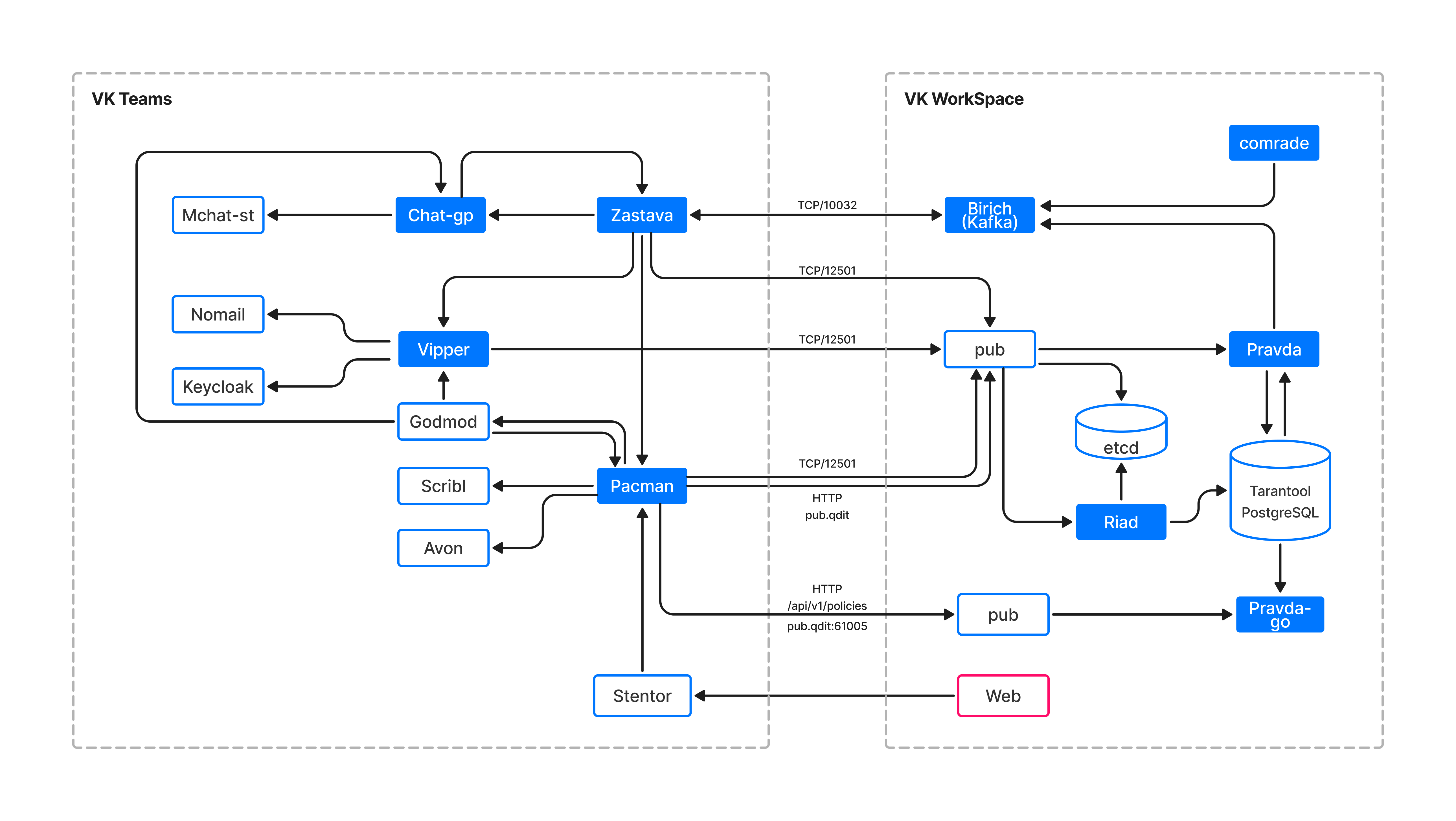 Сетевой доступ между сервисами Мессенджер и ВКС и сервисами VK WorkSpace:
