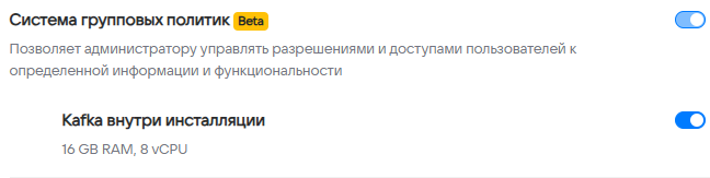 - Система групповых политик ( для использования Apache Kafka внутри инсталляции выберите опцию «Kafka внутри инсталляции»):