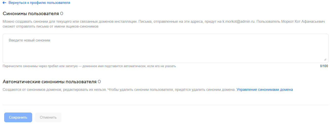 Синонимы для почтовых адресов пользователей
