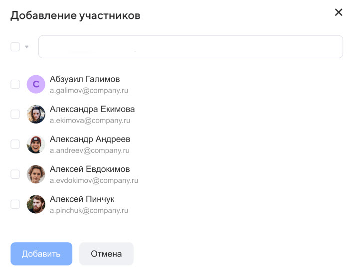 - Наведите курсор на аватар в строке пользователя и отметьте его галочкой.
