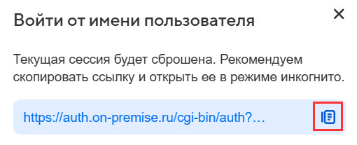 Доступ к ящику пользователя предоставляется по сгенерированной ссылке. В открывшемся окне скопируйте ссылку для входа и откройте ее в режиме инкогнито — тогда ваша текущая сессия не сбросится.