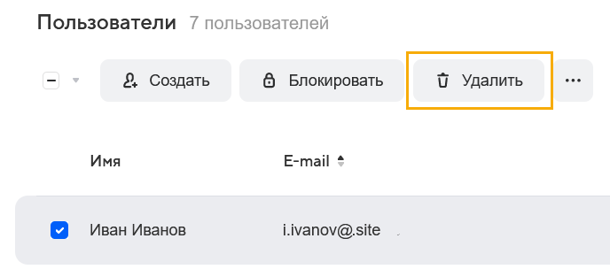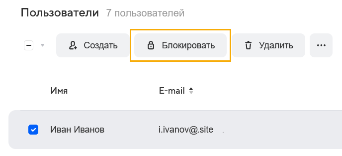 Вся информация в почтовом ящике сохранится. Чтобы разблокировать пользователя, выделите его галочкой и нажмите Разблокировать.
