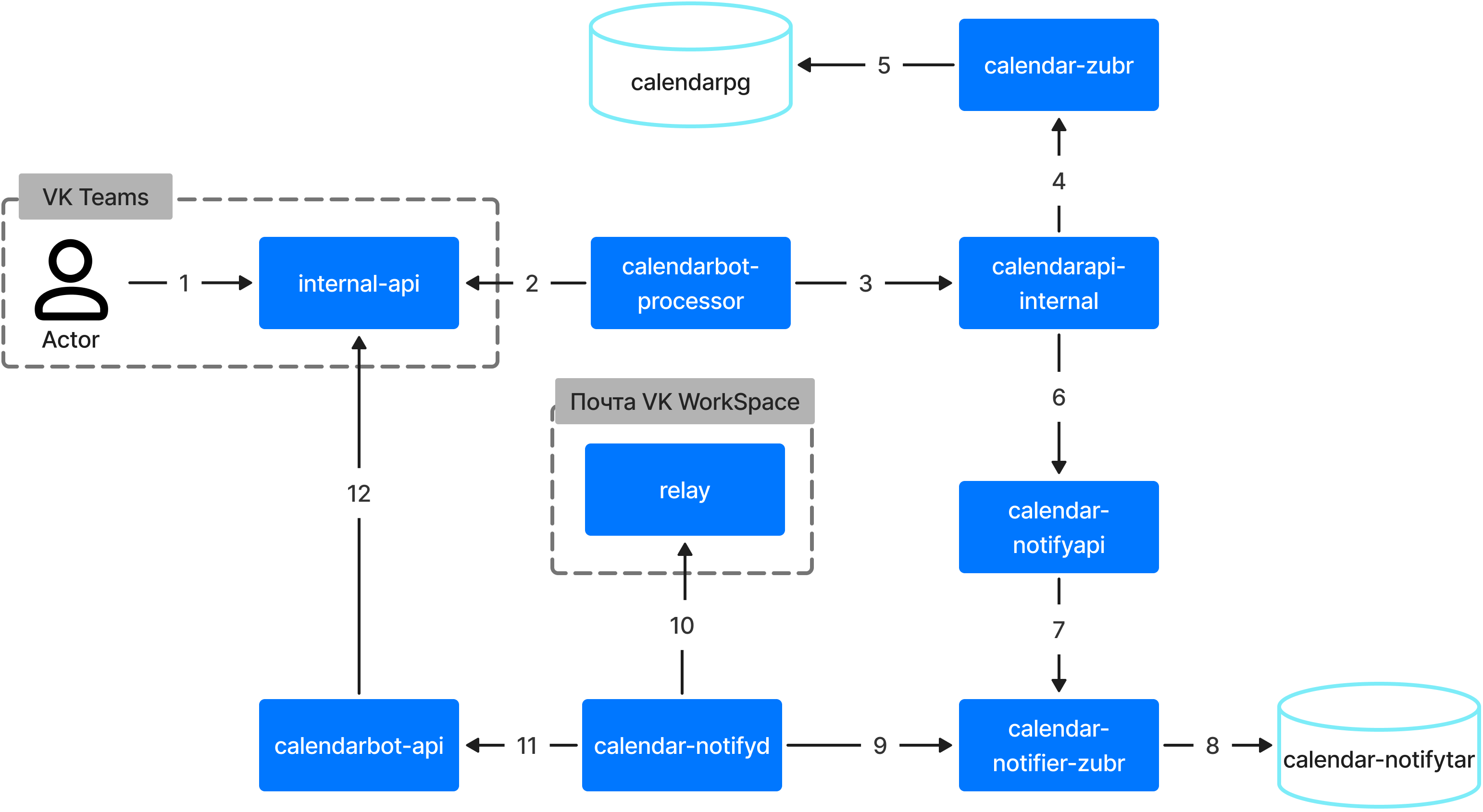 | 7 | calendar-notifyd | gRPC | calendarbot-api — API бота календаря Супераппа VK WorkSpace |