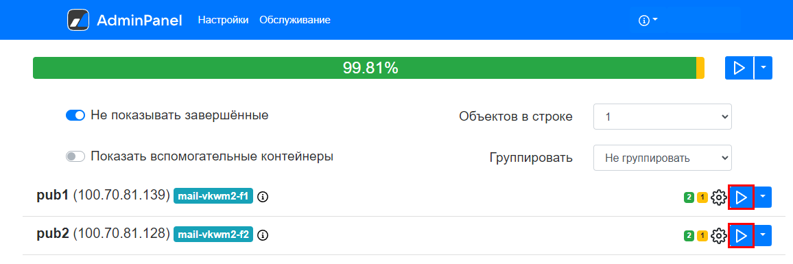 - В случае установки Почты на 1 ВМ, можно сгенерировать контейнеры автоматически и запустить автоматическую установку. Если у вас кластерная Почта, то добавьте контейнеры вручную.
