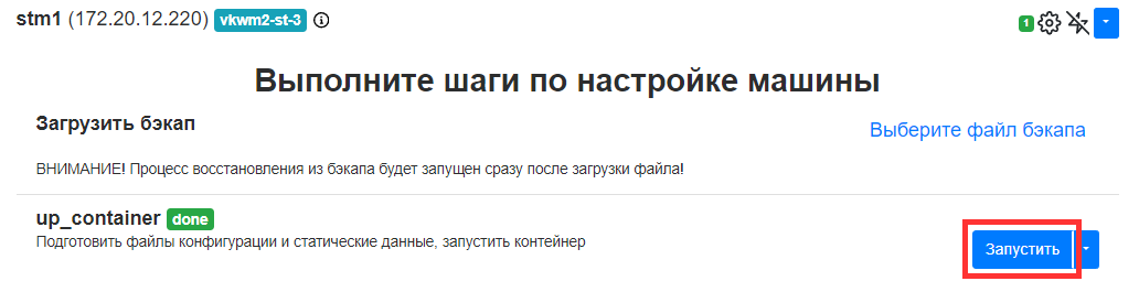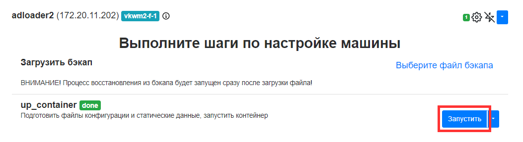 - Для каждого контейнера нажать на значок шестеренки справа от названия контейнера и выполнить шаг up_container.