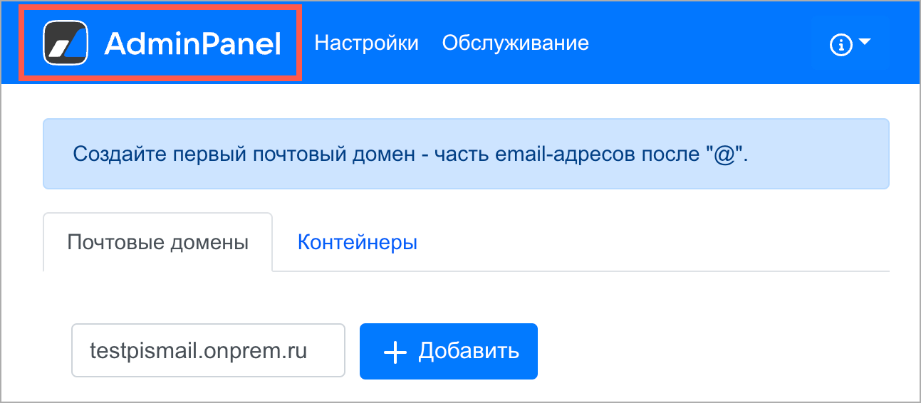 В веб-интерфейсе установщика перейдите к списку контейнеров, кликнув по логотипу Admin Panel