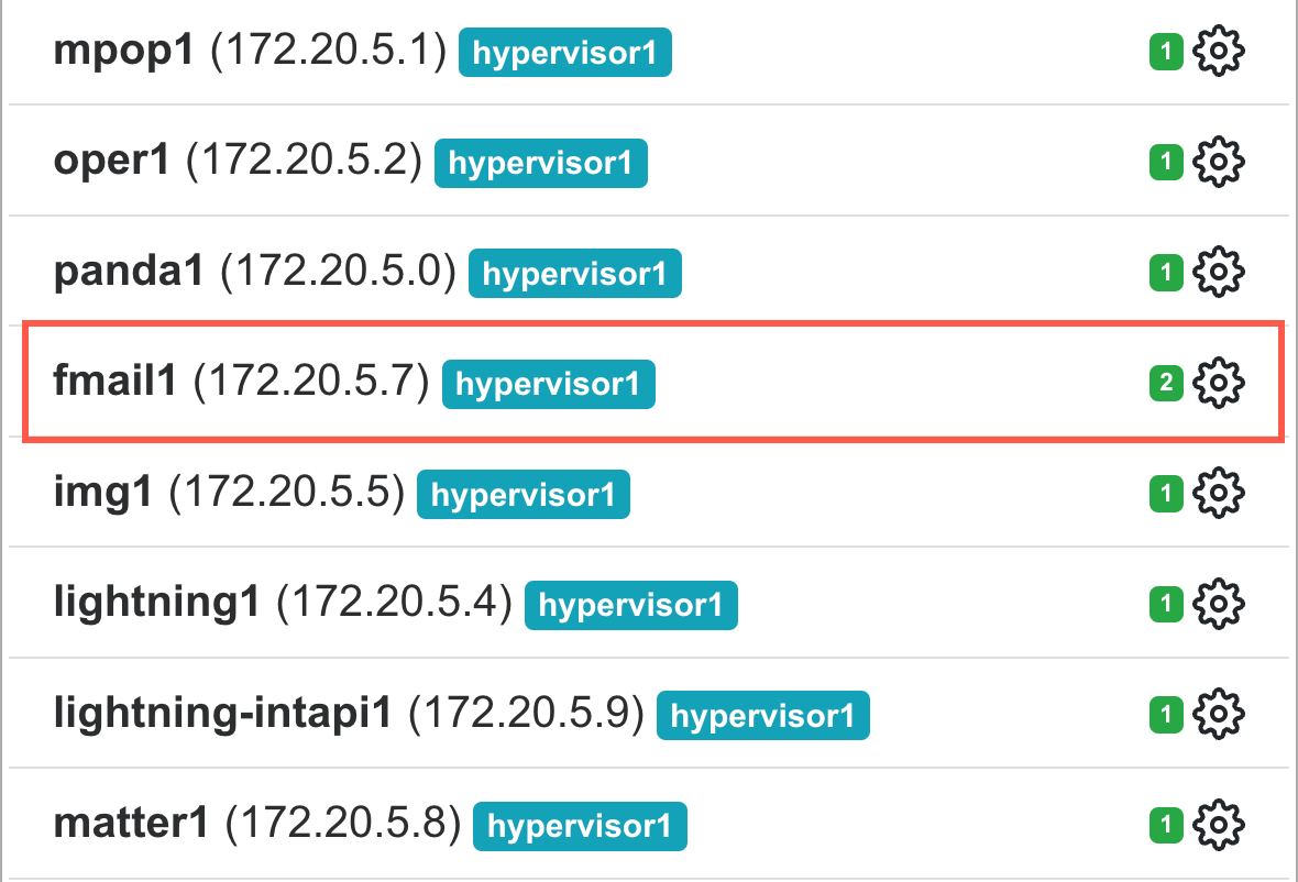 Найдите в списке контейнеров fmail1 и нажмите на значок шестеренки справа от названия контейнера.