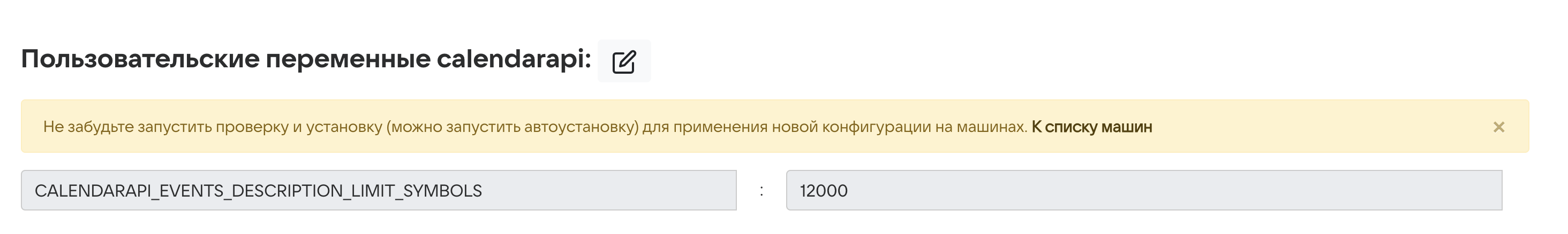 CALENDARAPI_EVENTS_DESCRIPTION_LIMIT_SYMBOLS, в поле Значение переменной введите значение нового лимита. -