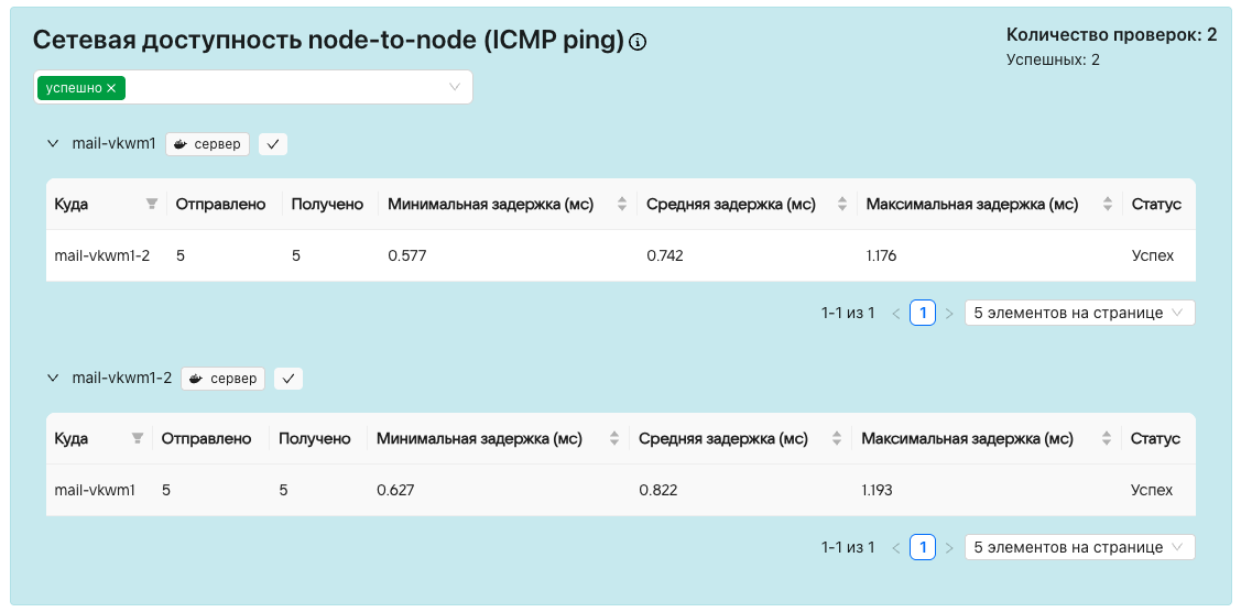Проверяется ICMP ping связность между серверами.