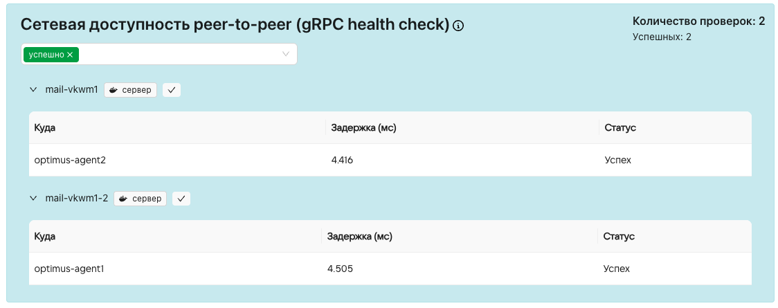 optimus-agentпозволяет выявить некоторые инфраструктурные проблемы, чтобы во время эксплуатации/установки можно было быстро диагностировать возникающие проблемы.optimus-agentпредоставляет единый интерфейс (gRPC API) для получения состояний инфраструктуры.