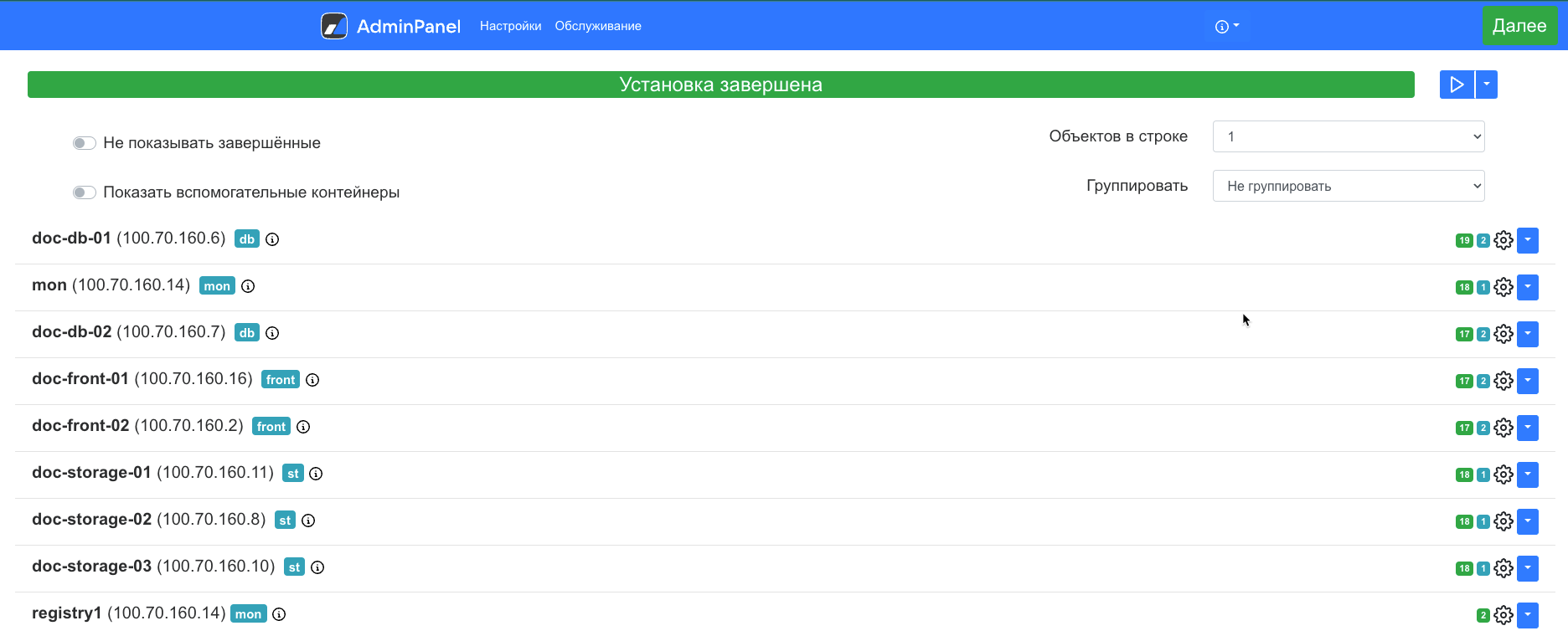 Нажмите на кнопку Сгенерировать автоматически, чтобы добавить по одному контейнеру для каждой роли.