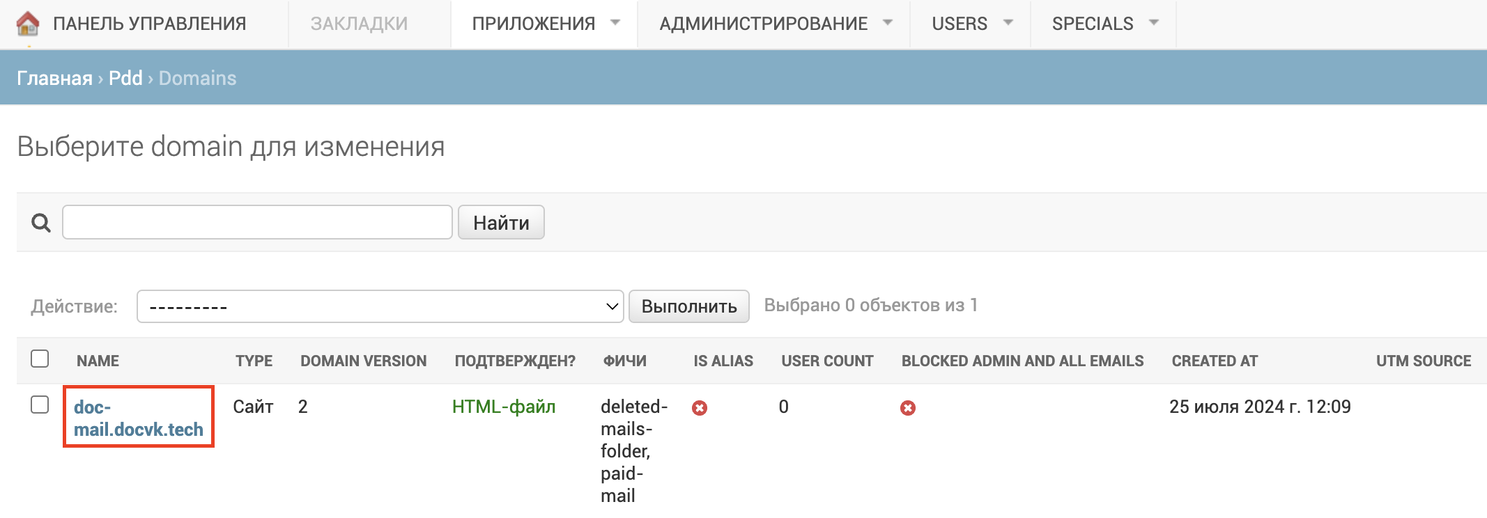 Кликните по домену в списке.