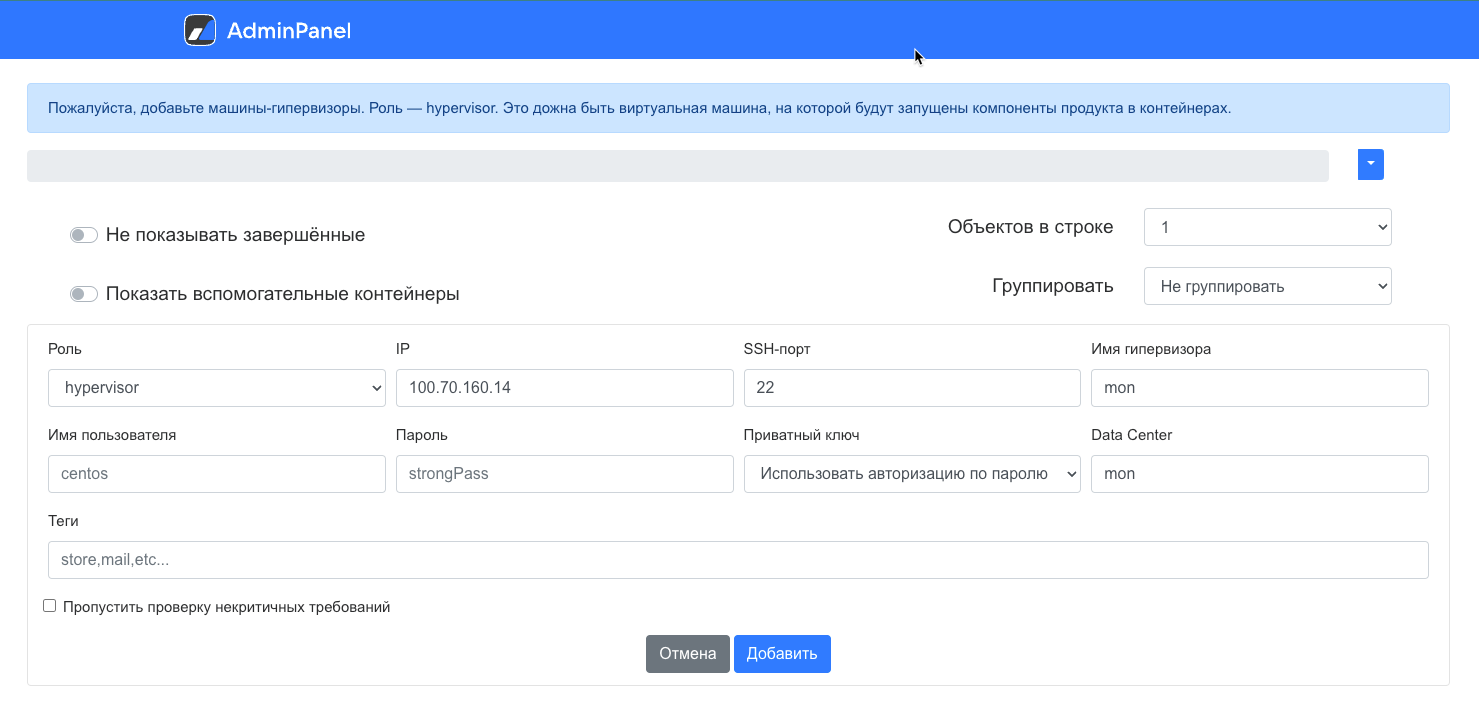 При появлении ошибок на гипервизоре на нем появится тег Не отвечает, а на контейнерах, относящися к этому гипервизору — Не отвечает гипервизор.