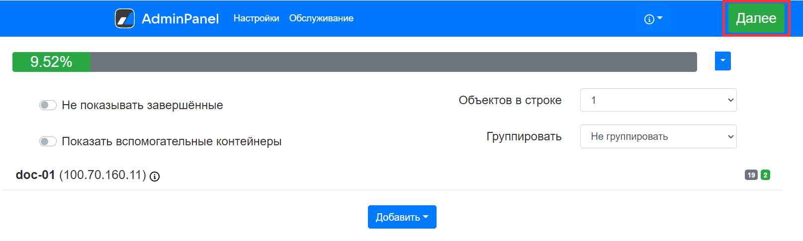 Статус контейнера:
