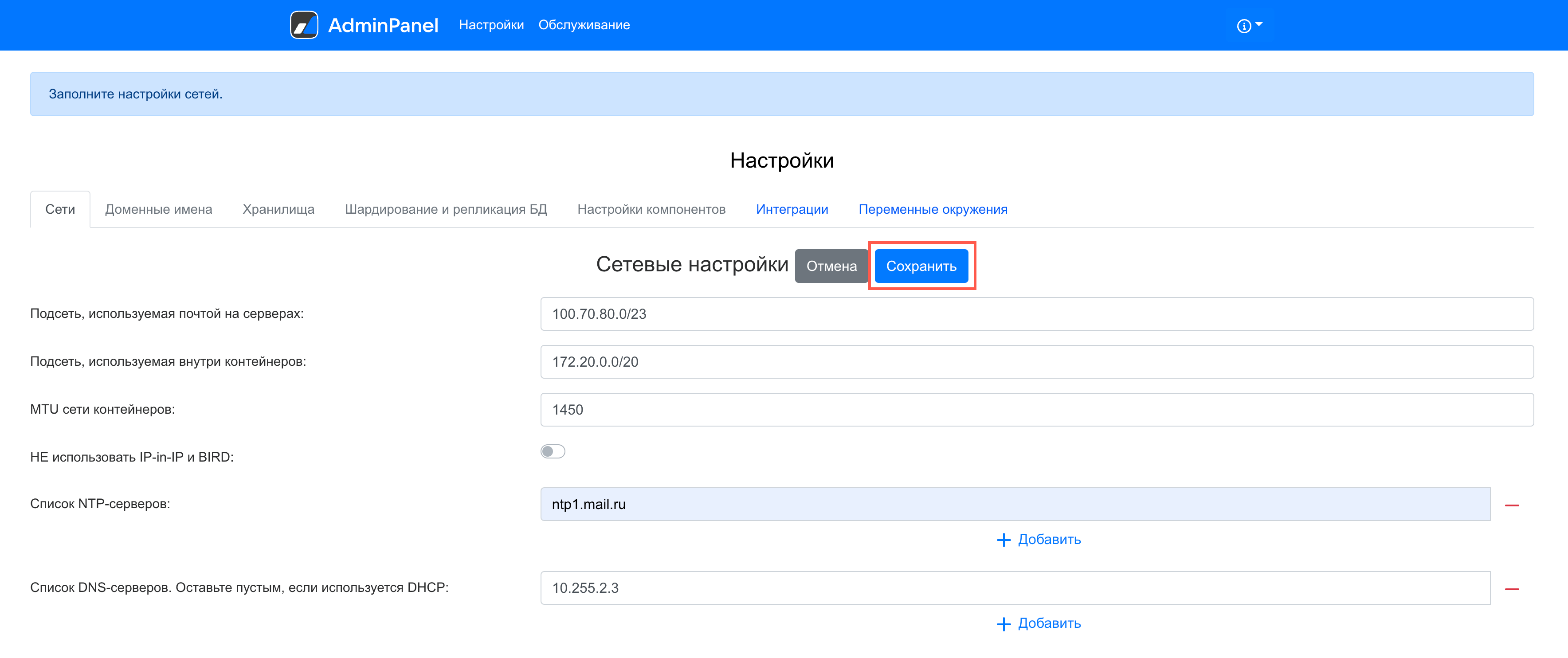 Когда все поля будут заполнены, нажмите на кнопку Сохранить для перехода к следующему шагу.