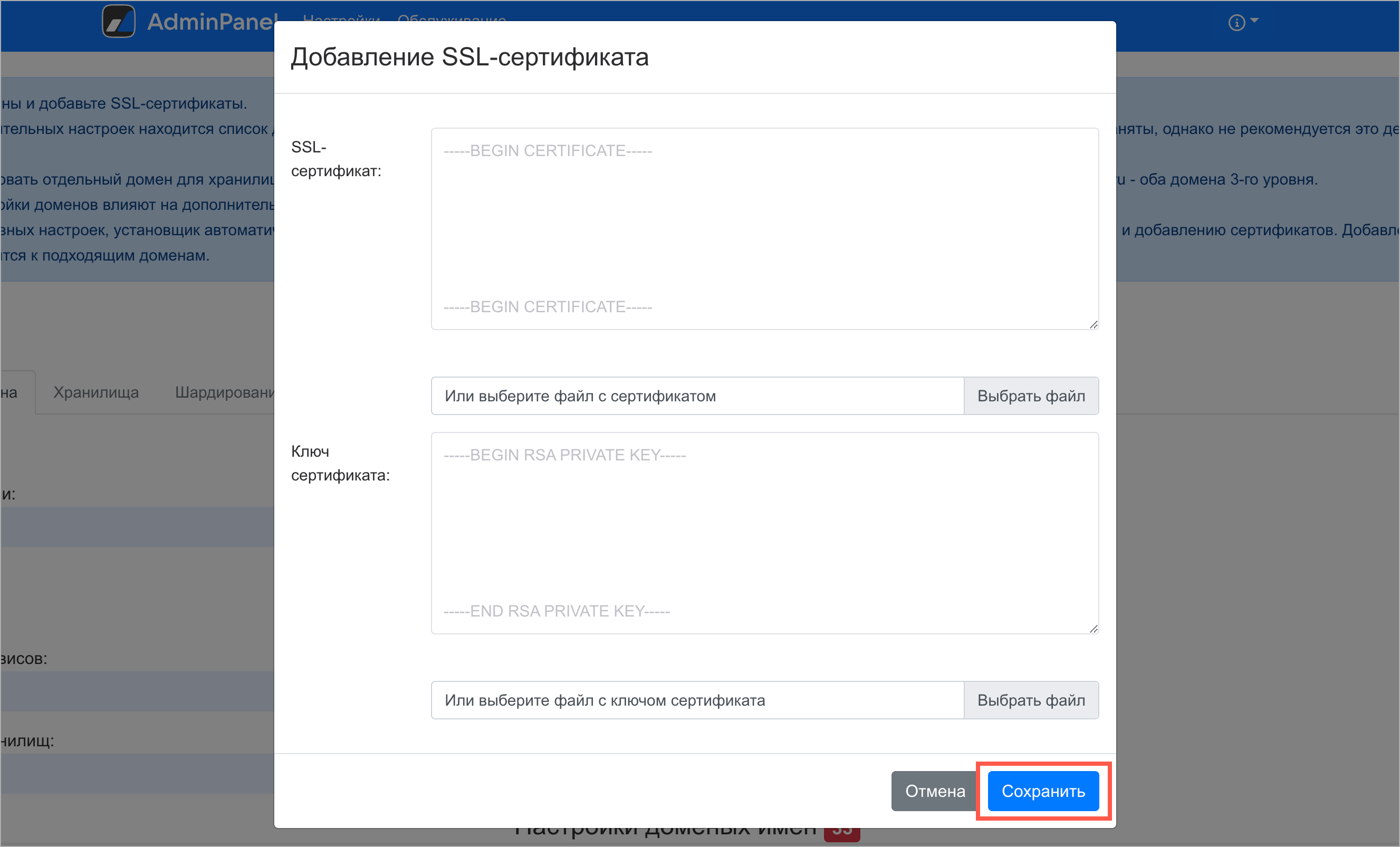 Добавление SSL-сертификатов