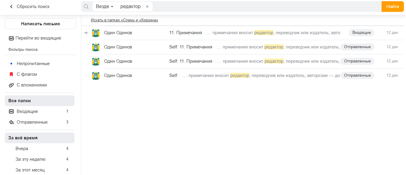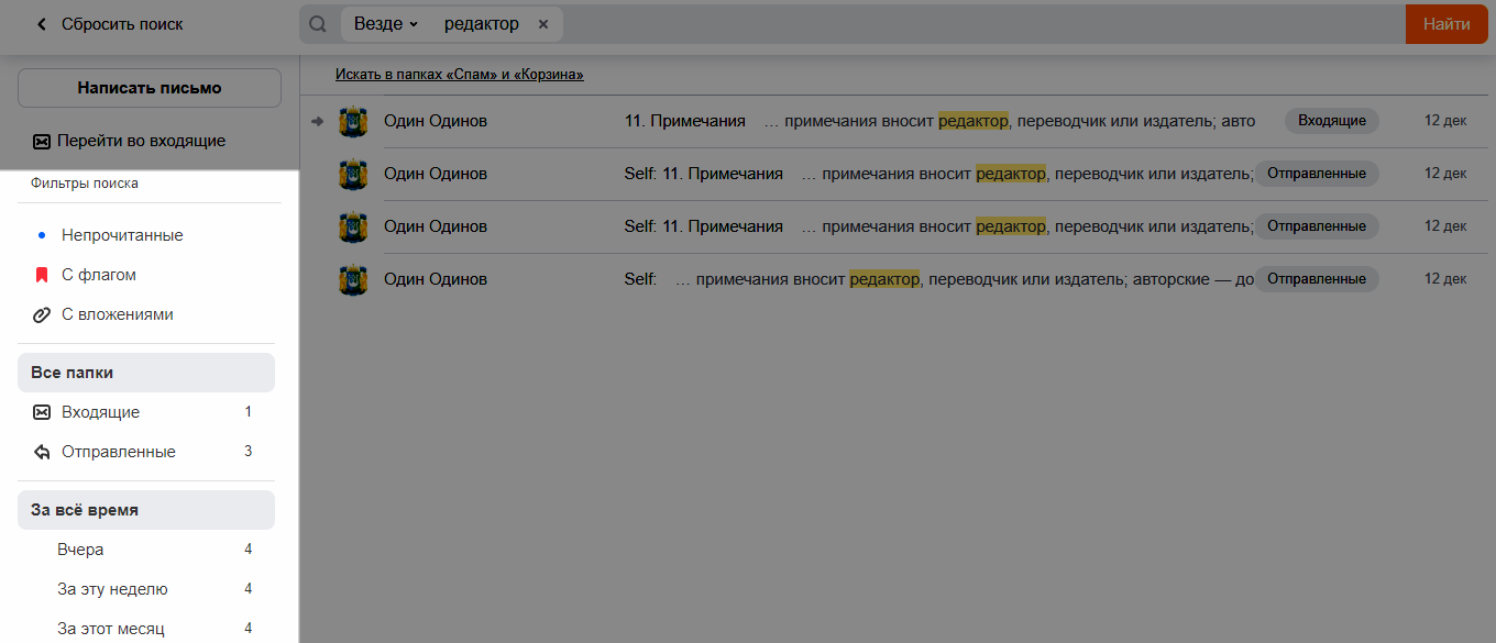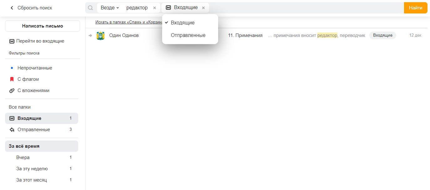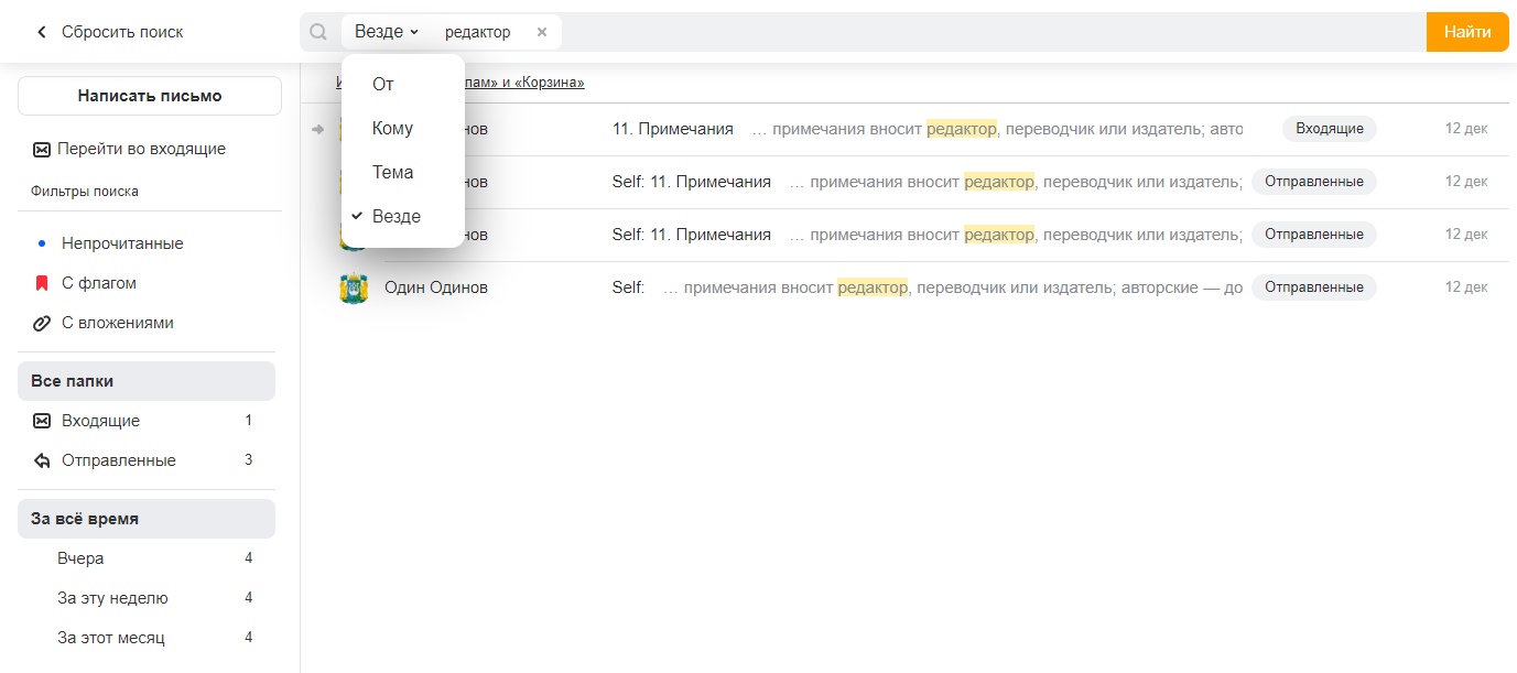 Поиск писем