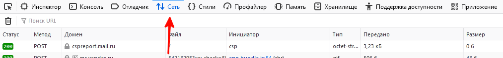 Перейдите на вкладку Network (Сеть).