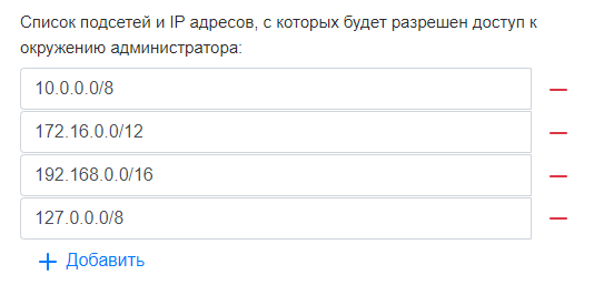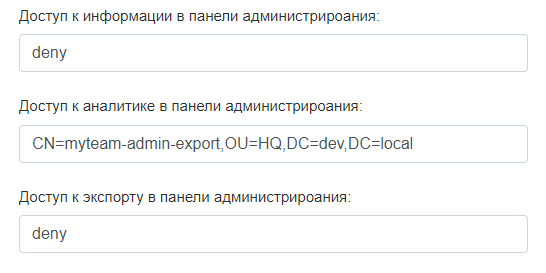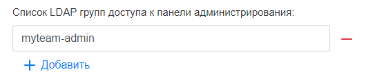 - Название группы пользователей, которым будет доступно окружение администратора, например myteam-admin. Название группы будет использовано при настройке доступа к окружению администратора.