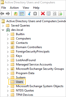 - В оснастке Active Directory Users and Computers выберите пользователя, под которым будет происходить подключение и поиск пользователей.